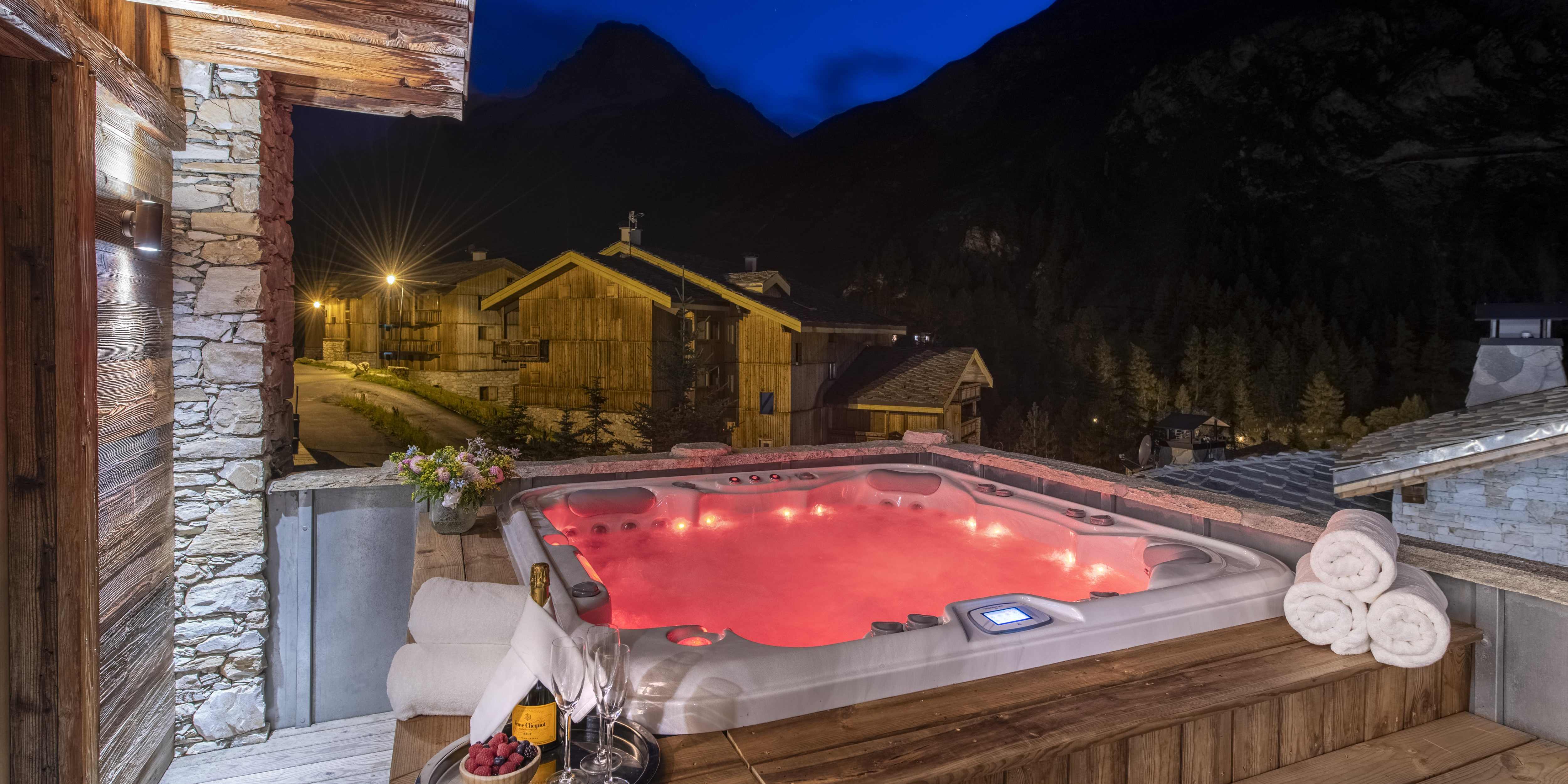 Das Chalet Face à Face im Val d'Isère liegt direkt an den Pisten des berühmten französischen Skigebiets und nur 15 Minuten zu Fuß vom Dorfzentrum entfernt. Durch seine erhöhte Lage bietet es seinen Gästen einen atemberaubenden Blick auf die umliegende Berglandschaft. Das Anwesen wurde 2021 unter Berücksichtigung der lokalen Architektur renoviert und stilvoll eingerichtet. Auf 380 Quadratmetern haben in sechs Schlafzimmern bis zu 14 Personen Platz – das Luxuschalet ist somit der perfekte Rückzugsort für eine Großfamilie. Nach einem Tag auf der Piste können sich die Gäste im Wellnessbereich entspannen. Dort erwartet sie ein Indoor-Swimmingpool, eine Dampfdusche, eine geräumige Sauna sowie ein – aus einer Kombination aus Holz und Stein gestalteter – Massage- und Yogabereich. Auf derselben Etage befindet sich der Kinoraum, von dem besonders die Kinder begeistert sein werden. Ein Highlight des Chalets ist der große Whirlpool auf der Terrasse, von dem man einen fantastischen Blick über das Tal hat. Eindrucksvoll ist auch der Wohnbereich mit seinen fünf Meter hohen, kathedralartigen Decken, den freiliegenden Balken, dem hängenden Kamin und den großen Fenstern. Über dem offenen Wohnbereich befindet sich ein Fernsehzimmer im Zwischengeschoss, in dem es sich die Familie gemütlich machen kann.