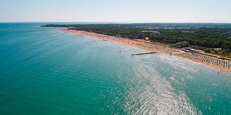 Das beginnt ja schon mal damit, dass die Stadt aus den drei Teilen Lignano Sabbiadoro, Lignano Pineta und Lignano Riviera besteht. Jeder mit seinem eigenen Flair und Charme, seinen eigenen Highlights. Während man in Sabbiadoro am östlichen Ende der Halbinsel die mondäne Fußgängerzone mit schicken Lokalen und jeder Menge Geschäfte und Eissalons findet, besticht Pineta mit seinem städtischen Pinienwald und der Architektur. In den 1950er Jahren hat der Architekt Marcello d’Olivo hier einen damals futuristisch anmutenden Stadtteil geschaffen. Heute sind die Villen in den spiralförmig angelegten Straßen mindestens genauso hipp wie damals. Lignano Riviera wiederum ist der ruhigste Teil, hier liegen die Campingplätze der Stadt, außerdem kann man auf einer Fähre den Tagliamento überqueren und danach in der Nachbarprovinz Veneto seine Radtour fortsetzen.