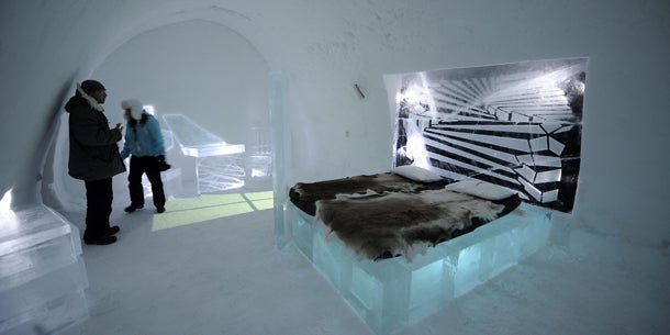 Neue Vorschriften zwingen die Betreiber des bei Touristen beliebten Eishotels im nordschwedischen Jukkasjärvi zu einer bisher als überflüssig angesehenen Maßnahme. Der Wohnbehörde des Landes in Stockholm zufolge muss ab sofort jedes Zimmer über einen Brandmelder verfügen, obwohl praktisch das ganze Hotel aus Eis und Schnee besteht.