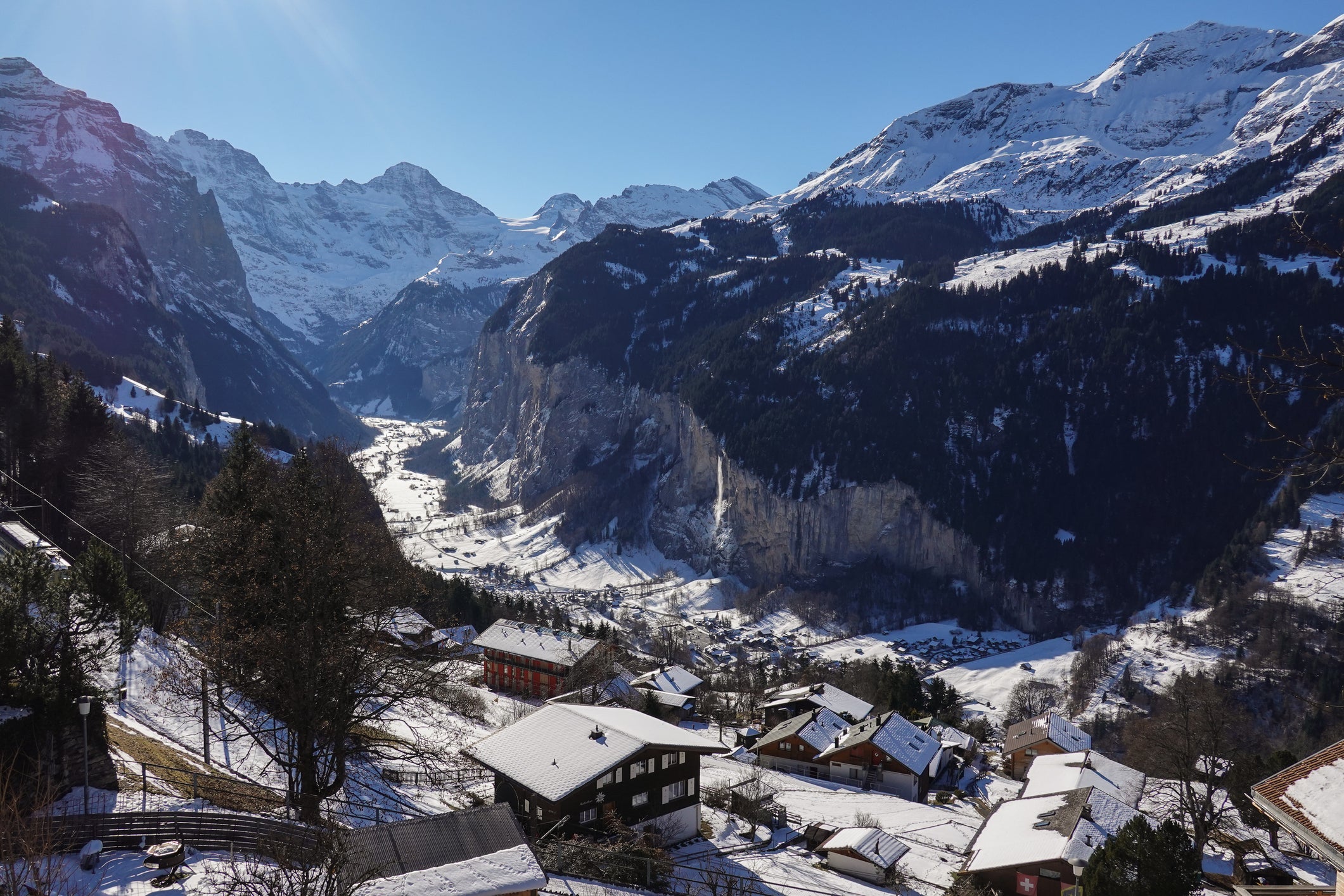 Mit dem Flugzeug. Der nächste Flughafen ist Bern. Von dort sind es ungefähr eine Stunde mit Auto oder Zug bis nach Lauterbrunnen.
