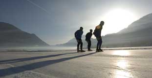 Mit seinen 6,5 km² präsentiert sich der Weissensee in den Wintermonaten als größte Natureisfläche Europas. Und damit als aufregende Spielwiese und Tummelplatz für Eisläufer, Eisgolfer und Eishockeyspieler. Um das wahrlich spiegelglatte Vergnügen kümmert sich sogar ein eigener Eismeister samt seinem Mitarbeiterteam, nehmen sie doch Tag für Tag die 25 km Eislaufrundbahnen, Eisstockbahnen und Eishockeyplätze sowie die 400 Meter lange Bahn für Eisschnellläufer unter ihre Fittiche.