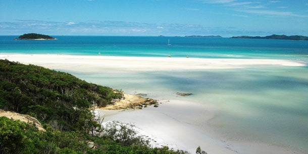 Fast zu weiß um wahr zu sein! Mit einem Quarzgehalt von beinahe 99 Prozent gilt der berühmte Whitehaven Beach als einer der weißesten Strände weltweit.