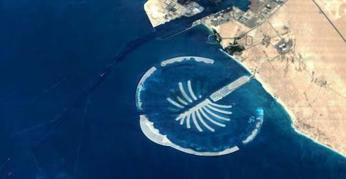 Nur wenige Meilen von der Palme entfernt nimmt ein weiteres Mega-Projekt langsam Formen an, "The World", eine Ansammlung von Inseln, die aus der Luft wie die Weltkarte aussehen. Und auch weitere "Palmen" sollen im Golf entstehen, "Palm Jebel Ali" im Westen von Dschumeirah und "Palm Deira" im Osten. Doch die Arbeiten für "The World" ziehen sich in die Länge, seit 2004 wird gebaggert und geschüttet, erst 13 Prozent der künstlichen Inseln sind bislang fertig. Im Gegensatz zu den "Palmen" werden bei der "Welt" nur Inseln und Grundstücke verkauft. Die Investoren können dann selbst ihre "Erdteile" bebauen - allerdings unter strengen Auflagen für die Höhe der Gebäude. Nakheel versichert, die Hälfte dieser Inseln sei bereits verkauft.