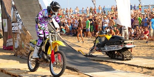 Die weltbeste Freestyle-Show brachte gestern Abend tausende „Splashies“ außer Rand und Band. X-Games Goldmedaillen-Gewinner Justin Hoyer (USA) hat dabei den ersten Snowmobile Backflip am Strand durchgeführt. „Mit Masters of Dirt erreicht unser Entertainment-Programm das nächste Level“, sagt Didi Tunkel, Splashline Geschäftsführer. Damit nicht genug: Culcha Candela wird heute Abend die Sony Ericsson Base zum Beben bringen.
