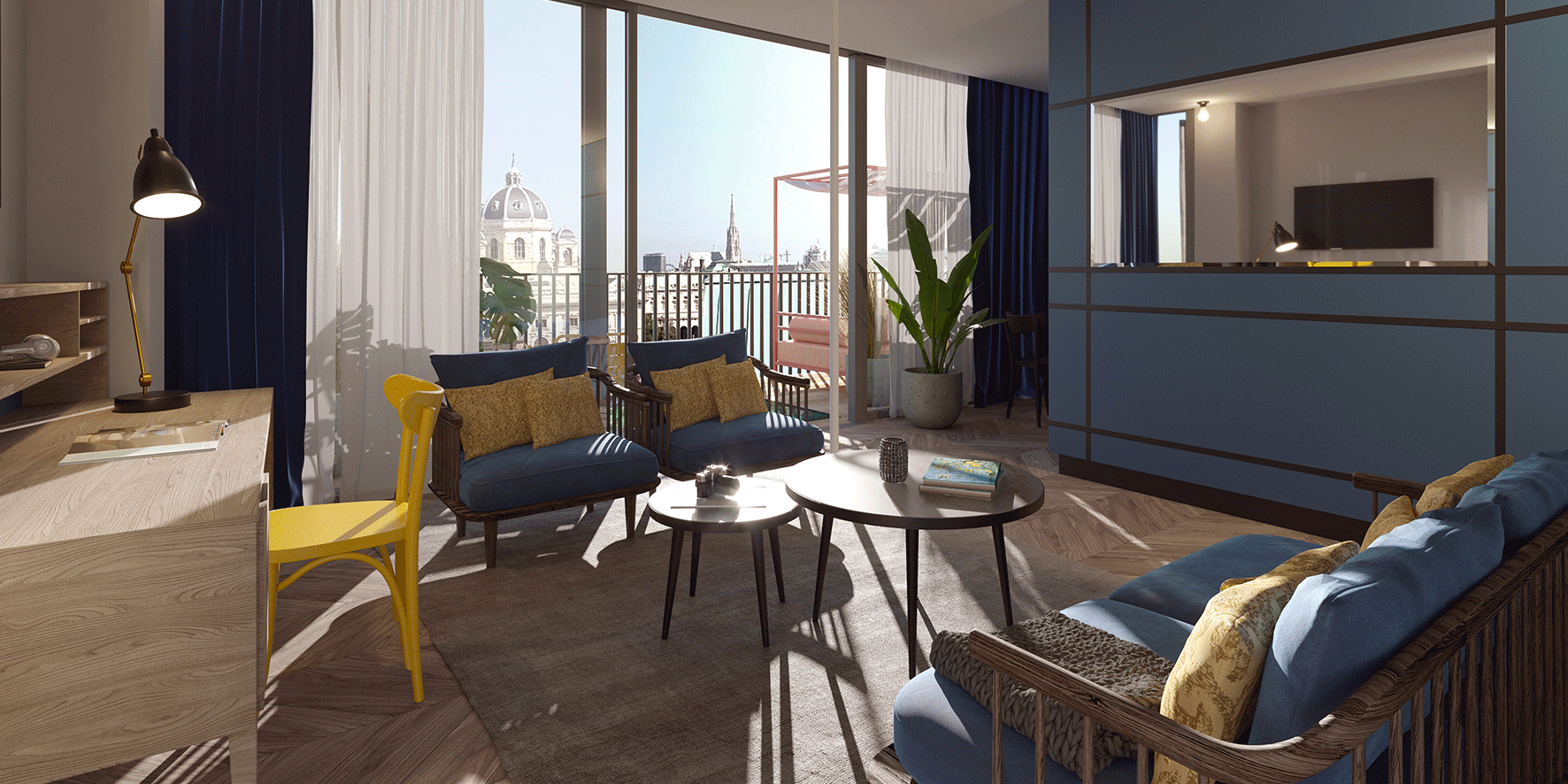 Derzeit wird noch eifrig an den letzten Details gearbeitet, aber im Frühjahr 2021 soll es soweit sein: direkt am Wiener Museumsquartier eröffnet GILBERT. Ein neues, ausgefallenes Hotel für die City.