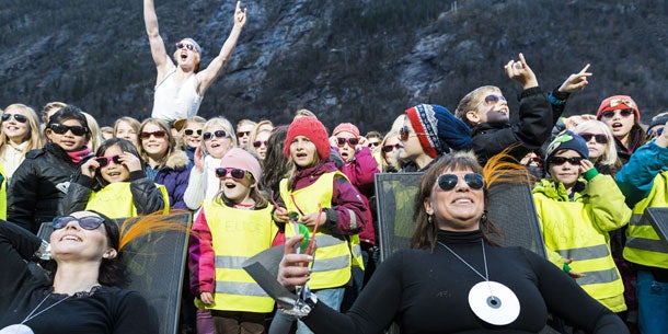 Mit Sonnenbrillen ausgerüstet starrten die Bewohner bei der Einweihungsfeier am Mittwochmittag auf die Riesenspiegel und warteten auf die ersten Strahlen - die sich schließlich vorsichtig zeigten. "Eine hundert Jahre alte Idee ist heute Wirklichkeit geworden", sagte Bürgermeister Steinar Bergsland. Rjukan sei "ein Ort, in dem das Unmögliche möglich wird".