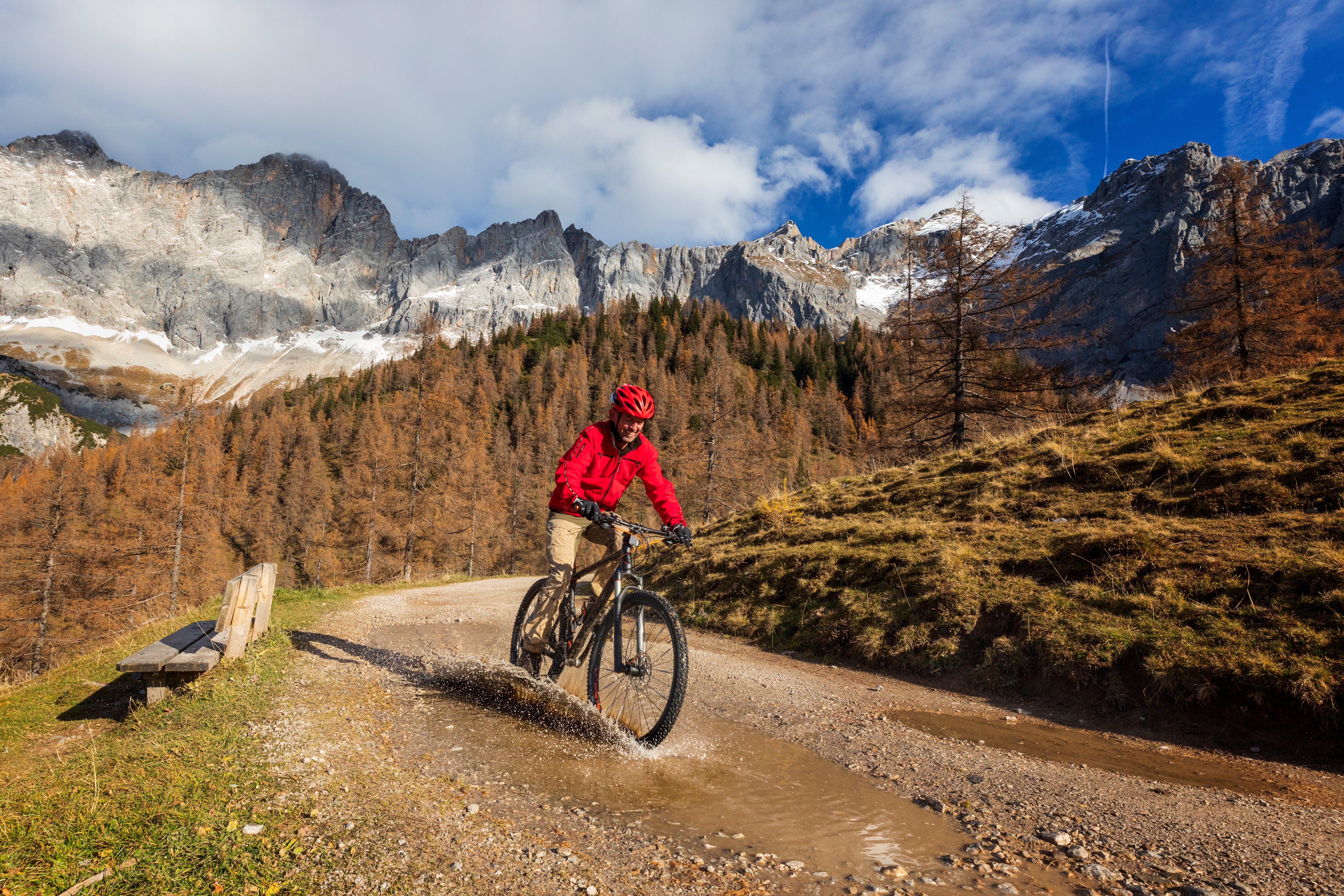 Wenn sich die Alpen als Farbenmeer aus Gold und Kupfer präsentieren, beginnt für Mountainbiker und Genussradler die vielleicht schönste Zeit des Jahres. Zwischen Abtenau, Schladming und Hintertux wartet ein Paradies aus Singletrails, Panoramarouten und urigen Hütten für eine entspannte Radlerrast.