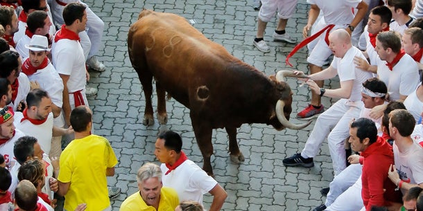 Während des neuntägigen Festes werden jeden Morgen vor allem Jugendliche durch die Gassen Pamplonas flitzen - verfolgt von schnaubenden Stieren. Während des erstmals 1951 ausgerichteten San-Fermin-Festes finden auch Stierkämpfe, religiöse Prozessionen, Konzerte sowie Trinkgelage in den Straßen statt.