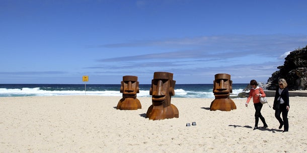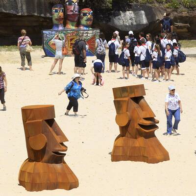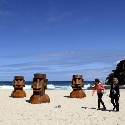 Open-Air-Ausstellung in Sydney. Am Strand der australischen Metropole findet bereits zum 15. Mal "Sculptures by the Sea" statt. Von 3. bis 20. November stehen mehr als 100 Exponate an der Küste vom bekannten Bondi- bis zum Tamarama-Beach.