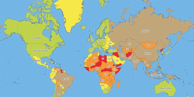 Die "Travel Risk Map" zeigt die sichersten und gefährlichsten Länder der Welt.
