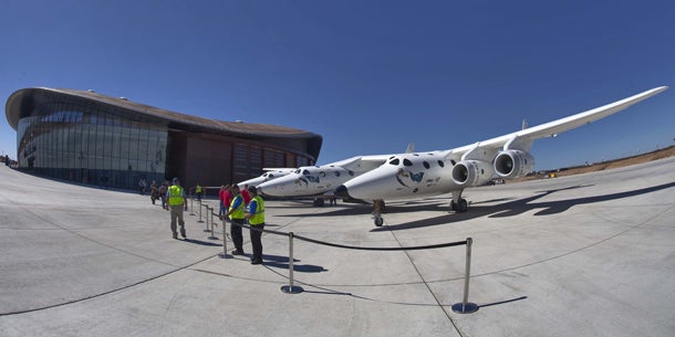 Bei der Feier auf dem Gelände des neuen „Spaceport America“ in der Wüste von New Mexico seilte sich der Chef des Unternehmens Virgin gemeinsam mit Akrobaten von einem Hangar ab. Insgesamt verkaufte Virgin Galactic bisher 430 Tickets zum Preis von je rund 145.000 Euro.
