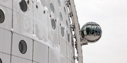 Keine Höhenangst und absolut schwindelfrei? Dann steigen Sie in Schwedens neue Attraktion - den "Sky View" - und genießen Sie einen atemberaubenden Ausblick über Stockholm.