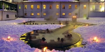 Was gibt es Schöneres als nach einem erlebnisreichen Wander- oder Schitag sich in einer Wellness-Oase verwöhnt zu werden? Die Thermalbäder und Wellnesshotels im Aostatals bieten ein Wohlfühlprogramm der Extraklasse. Einen wichtigen Beitrag leisten die Architektur der Häuser – sehr oft aus Holz und Stein erbaut – und das unverwechselbare Panorama. Mit dem Blick auf den Mont Blanc entspannt man im warmen Thermalwasser, bei einer wohltuenden Massage, schwitzt den Sporttag in einer Sauna aus oder dreht eine Runde im Schwimmbad, um sich dann auf einen kulinarischen Abend zu freuen.