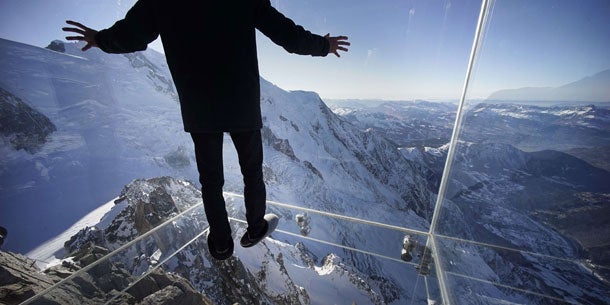 Schon mit der Seilbahn Téléphérice de l'Aiguille du Midi geht es hoch hinaus. Auf der Fahrt zum 3842 Meter hohen Gipfel bekommen Besucher schon viel Höhenluft ab. Wem das jedoch noch immer nicht genug ist, der kann sich ab 21. Dezember einen extra Adrenalin-Kick holen: Auf dem Gipfel über Chamonix eröffnet eine spektakuläre Aussichtsplattform auf dem Aiguille du Midi, einem felsigen Vorposten des Mont-Blanc-Massivs. Sie ist komplett verglast und gibt einen irren Blick in den tausend Meter tiefen Abgrund frei. Wer unter Höhenangst leidet, sollte den Glaskubus lieber nicht betreten.