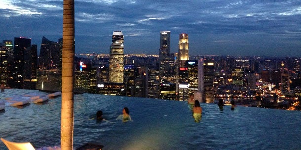 Der Wohlfühlbereich auf 200 Metern Höhe liefert sich ein Wettrennen der Superlative mit der Skyline. Im Infinity-Pool des „Marina Bay Sands“ in Singapur scheint die glänzende Silhouette der Stadt zum Greifen nah. Sauna in luftiger Höhe sowie unzählige Wellnessanwendungen werden hier geboten. Entspannung ist garantiert – wenn man nicht unter Höhenangst leidet.