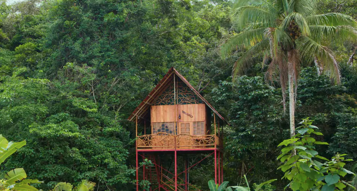 Das auf Stelzen stehende Baumhaus ist umgeben vom 35 Hektar großen Regenwald und bietet Zugang zu heißen Quellen, die aus dem Boden sprudeln. Wenn der Wind weht, kann es allerdings auch schon mal zu einem leichten Schwanken kommen.