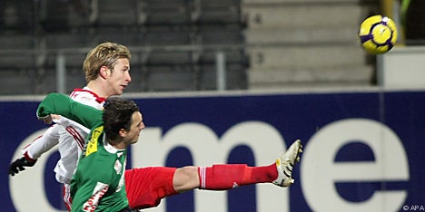 Nach gefühlvollem Zuspiel von Wallner schloss dessen Sturmpartner Janko mit links zum schnellen 1:0 nach etwas mehr als einer Minute ab. Der Bundesliga-Torschützenkönig der vergangenen Saison hätte in der Folge gleich nachlegen können, setzte den Ball, diesmal nach Ulmer-Zuspiel, aber deutlich über das Tor (5.). Die Hausherren kamen in der Folge einige Male gefährlich in die Nähe des Tores von Eddie Gustafsson, jedoch nicht wirklich zum Abschluss.