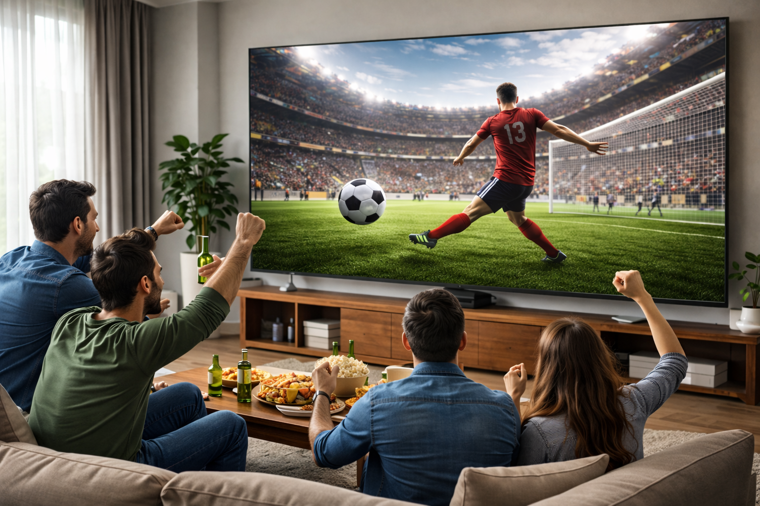 Ein riesiger Fernseher, der perfekt für die kommende Fußballzeit gemacht ist.