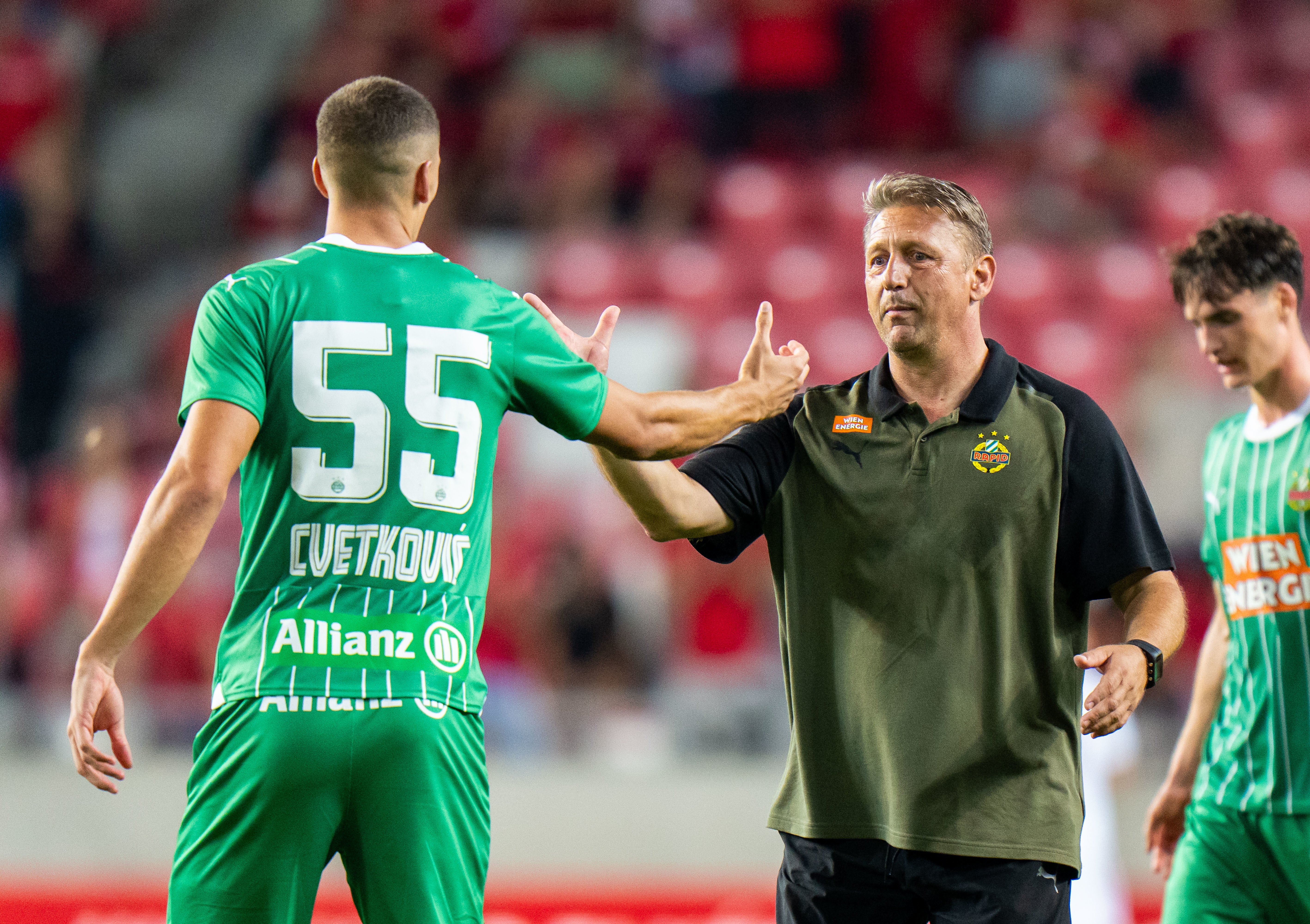 Bei den Kommentaren scheinen auch zahlreiche Mitspieler wie zum Beispiel Aleksa Pejic oder Leopold Querfeld auf. Vor allem Letzterer wird in Zukunft noch mehr im Fokus stehen. Der 19-Jährige steigt nach dem Cvetkovic-Aus zum neuen Abwehrboss auf. Wie schon beim 5:0 gegen BW Linz wird gegen Florenz wohl Maximilian Hofmann in der Innenverteidigung spielen. Mit Routinier Michael Sollbauer (33) steht ein weitere Alternative zur Verfügung. Angesprochen auf mögliche Neuverpflichtungen erklärte Trainer Zoran Barisic im Sky-Interview: “Ich glaube an meine Spieler und ich bin davon überzeugt, dass wir den Ausfall kompensieren können.”