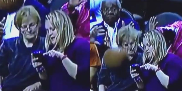 Eine Zuschauerin beim Basketball-Spiel zwischen den Charlotte Hornets und den Sacramento Kings musste ihre Unaufmerksamkeit teuer bezahlen. Statt aufs Spielfeld blickte die Dame mittleren Alters aufs Mobiltelefon ihrer Sitznachbarin - und übersah dabei den Ball, der sich mit Höchstgeschwindigkeit näherte und ihr direkt ins Gesicht knallte. Das Resultat: Eine blutige Nase und ein angeknackstes Ego. Denn das Missgeschick wurde landesweit im Fernsehen übertragen.