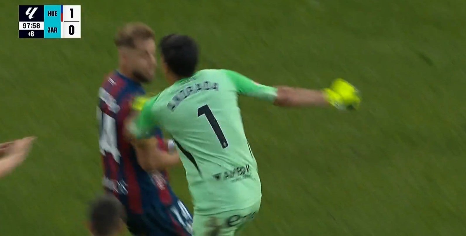 Der Szene war eine VAR-Überprüfung vorausgegangen. Huesca-Kapitän Pulido stellte sich Andrada in den Weg, als dieser den Schiedsrichter ansprach. Daraufhin gingen mit dem Tormann die Nerven durch, für seine Aktion sah er Gelb-Rot. Die Situation geriet dermaßen außer Kontrolle, dass die Polizei eingreifen musste. Die Sportzeitungen "Marca" und "AS" schrieben am Montag auf der Titelseite jeweils von einer "wilden Attacke" und einem "Derby der Schande".