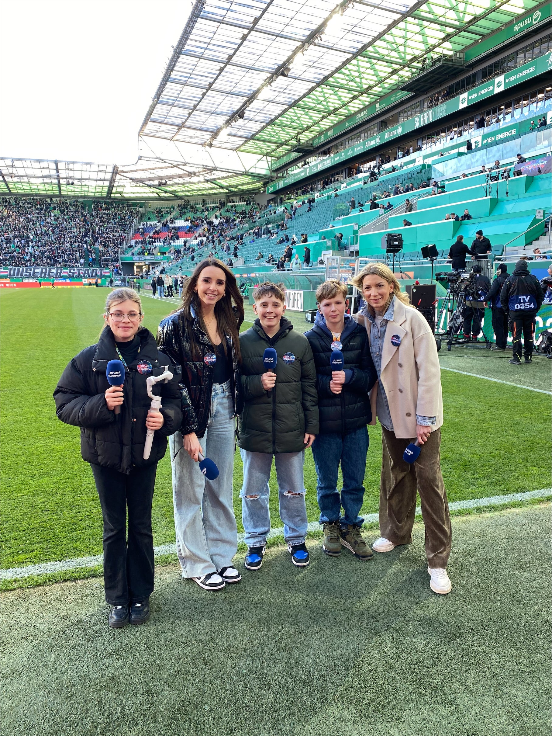 Sky erfüllte drei Kids den Traum das Derby in Hütteldorf als Reporter zu erleben.