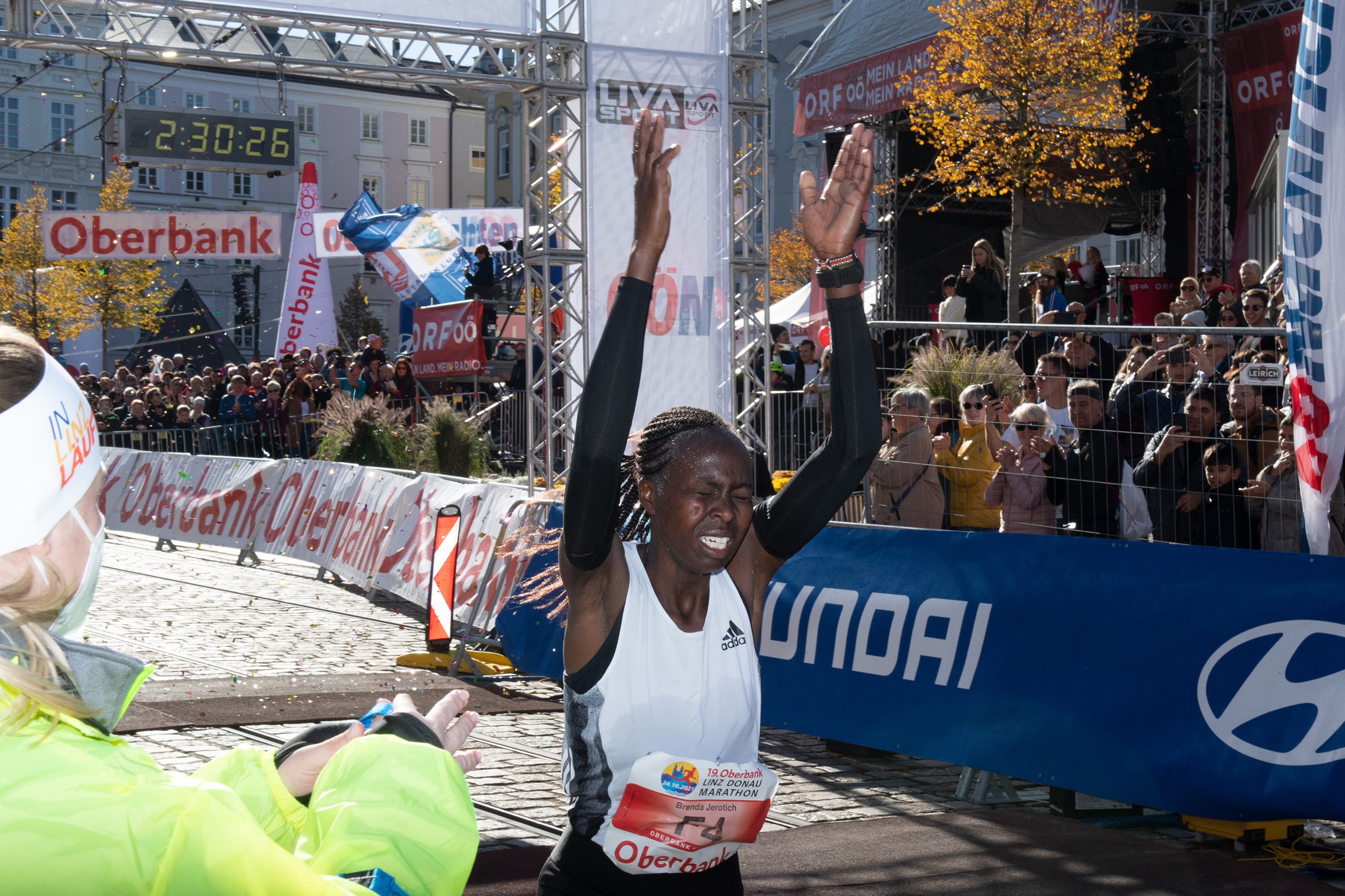 Die 24-Jährige triumphierte bei ihrem Debüt über die 42,195 Kilometer in 2:30:27 Stunden. Das Männerrennen gewann ihr 37-jähriger Landsmann Ezekiel Koech Kiprop in 2:09:43 Stunden. Die Linz-Rekordmarke von 2:07:33 aus dem Jahr 2007 blieb unangetastet. Österreichische Spitzenathleten waren nicht am Start.