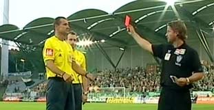 Der Strafsenat der österreichischen Fußball-Bundesliga hat am Montag Austria-Kärnten-Trainer Frenkie Schinkels wegen Schiedsrichterbeleidigung zu einer Geldstrafe von 300 Euro verurteilt. Als Schiedsrichter Hofmann den Kärnten-Trainer auf die tribüne schickte, zeigte Schinkels ihm die rote Karte. Da guckte selbst Schiri Hofmann nicht schlecht aus der Wäsche! Das Stadion bog sich vor Lachen.