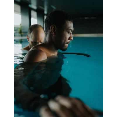 Alternative zum Kraftraum: Unser Team-Kapitän springt ins kalte Wasser.