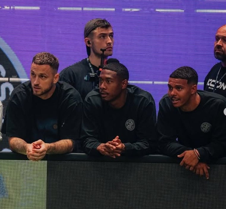 Das Besondere: Die Teams haben meist prominente Manager. Einer davon ist David Alaba. Der ÖFB-Kapitän ist Chef von „DNA Athletics“ – und ließ es sich am Montag nicht nehmen, zum dritten Spieltag in Düsseldorf vorbeizuschauen. Doch der 33-Jährige stand nicht alleine hinter der Bande, sondern brachte, wie bereits angekündigt, einen Spezialgast mit: Marko Arnautović.
