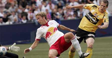 Die beste Möglichkeit auf das 2:0 fand aber Vonlanthen vor: Der Schweizer scheiterte nach toller Vorarbeit und Maßflanke von Zickler per Kopf aus kurzer Distanz an Schicklgruber (38.). Kurz darauf bewahrheitete sich wieder einmal die alte Fußball-Weisheit, dass man Tore, die man nicht schießt, bekommt, führte doch die erste Altach-Chance zum 1:1: Nach perfektem Zuspiel von Jun erwischte Kapitän Guem mit seinem Schuss zwischen die Beine Salzburg-Schlussmann Gustafsson kalt (40.).
