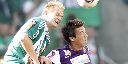 Die Austria hat im 294. Wiener Fußball-Derby gegen Rapid ihre Mini-Krise beendet. Nach vier erfolglosen Runden feierten die Violetten im Duell mit dem Erzrivalen am Sonntag einen 1:0-(0:0)-Auswärtserfolg. Für die Austria war es der erste Derby-Erfolg im Hanappi-Stadion seit dem 2. Mai 2004 (2:1). Die Mannschaft von Karl Daxbacher verbesserte sich in der Tabelle somit auf den vierten Tabellenrang, Rapid fiel auf den sechsten Platz zurück.