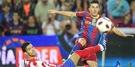 Der FC Barcelona hält in der spanischen Fußball-Meisterschaft Anschluss an die Spitzengruppe. Ohne Weltfußballer Lionel Messi, der wegen einer Bänderverletzung noch einige Tage pausieren muss, bezwangen die Katalanen am Mittwoch Sporting Gijon mühsam mit 1:0. Es war Barcelonas dritter Sieg im vierten Ligaspiel. Den Siegestreffer erzielte vor rund 77.000 Zuschauern im Camp Nou Angreifer David Villa in der 49. Minute.