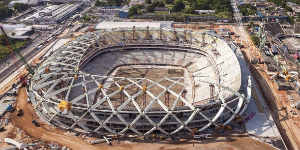 Der an einem Herzinfarkt gestorbene Mann habe unter großem Druck gestanden und an sieben Tagen pro Woche gearbeitet, sagten Familienmitglieder. Die Spielstätte in Manaus gilt als der exotischste Stadionstandort der WM 2014. Das Stadion fasst 42.374 Zuschauer. Die Kosten belaufen sich auf schätzungsweise 605 Millionen Reais (192 Mio. Euro). Die Arbeiten waren Ende Oktober zu 88 Prozent abgeschlossen. In Manaus werden vier WM-Gruppenspiele ausgetragen.