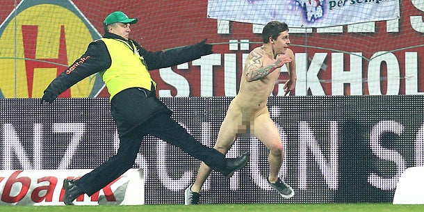 Nackter Ried-Fan foppte Security und zeigte Salzburg-Anhängern den Stinkefinger.