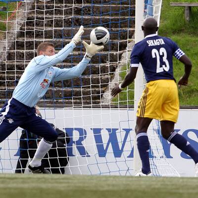folgenden Corner irrte der 18-jährige Torshavn-Keeper Torur Thomsen durch