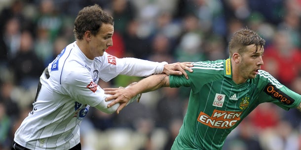 Danach übernahmen aber die im Spiel nach vorne sehr kreativen Hütteldorfer das Kommando, boten vor der Pause die wohl bisher stärkste Leistung im Frühjahr und machten das Fehlen des noch nicht im Kader stehenden Mittelfeld-Strategen Steffen Hofmann vergessen. Nach einem Einwurf von Schrammel setzte sich Burgstaller leicht gegen Koch durch und traf mit einem herrlichen Schuss knapp innerhalb des Strafraums genau ins kurze Kreuzeck zum 1:0 (13.).