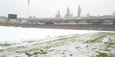 Horr-Stadion ist der Rasen großteils schneefrei, der letzte Rest wird