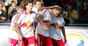 Vizemeister Red Bull Salzburg hat im proklamierten "wichtigsten Spiel der Saison" einen Befreiungsschlag geschafft. Mit einem 1:0 gegen Rapid rehabilitierten sich die "Bullen" am Sonntag nicht nur für die in der vergangenen Saison meisterschaftsentscheidende 0:7-Schlappe, sondern ließen drei Tage nach dem Aus im UEFA-Cup vorübergehend auch die Kritiker verstummen. Bei einem Zähler Rückstand ist Salzburg nun erster Verfolger von Spitzenreiter Austria.