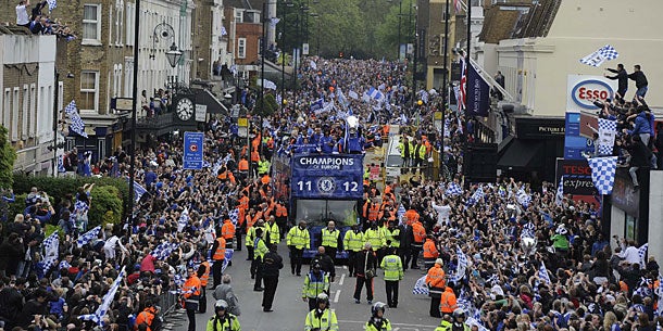 Was für eine Party! Chelseas Traum vom Champions-League-Titel ist endlich erfüllt – da war an Schlaf nicht zu denken. Nach einer feucht-fröhlichen Nacht in München (Klub-Eigentümer Roman Abramowitsch spendierte Champagner ohne Ende) jetteten die „Blues“ Sonntag Mittag heim nach London. Dort wurden sie am Nachmittag von Zehntausenden erwartet. In einem offenen Bus fuhren Finalheld Didier Drogba & Co. durch den Londoner Westen und präsentierten die silberne Trophäe.