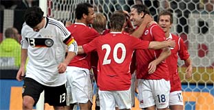 Mit der ersten Niederlage gegen Norwegen seit 1936 hat die deutsche Fußball-Nationalmannschaft einen Fehlstart ins neue Länderspieljahr hingelegt. Beim 0:1 gegen die zuletzt wenig überzeugenden Skandinavier gelang es dem Vize-Europameister am Mittwoch nicht, Schwung für die anstehenden Aufgaben in der WM-Qualifikation mitzunehmen. Christian Grindheim (63.) besiegelte vor 45.000 Zuschauer in Düsseldorf die Pleite für die enttäuschend schwache Elf von Bundestrainer Joachim Löw.