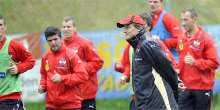Jankos Flieger hatte Verspätung, der Kapitän traf erst am Montagabend im Teamcamp ein. Prödl bekam am Samstag beim Sieg mit Werder einen Schlag aufs Knie und wird voraussichtlich auch noch am Dienstag pausieren. Baumgartlinger blieb wegen einer Verkühlung im Hotel.