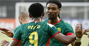 Ähnliche Erfolge erzielte er auch mit der Nationalmannschaft, für die er 1996 einen Tag vor seinem 16. Geburtstag zum ersten Mal spielte. Zwei Jahre später war er in Frankreich jüngster Spieler bei der WM. 2000 wurde Eto'o mit Kamerun in Athen Olympiasieger, im gleichen Jahr gewann er so wie auch 2002 den Afrika-Cup.