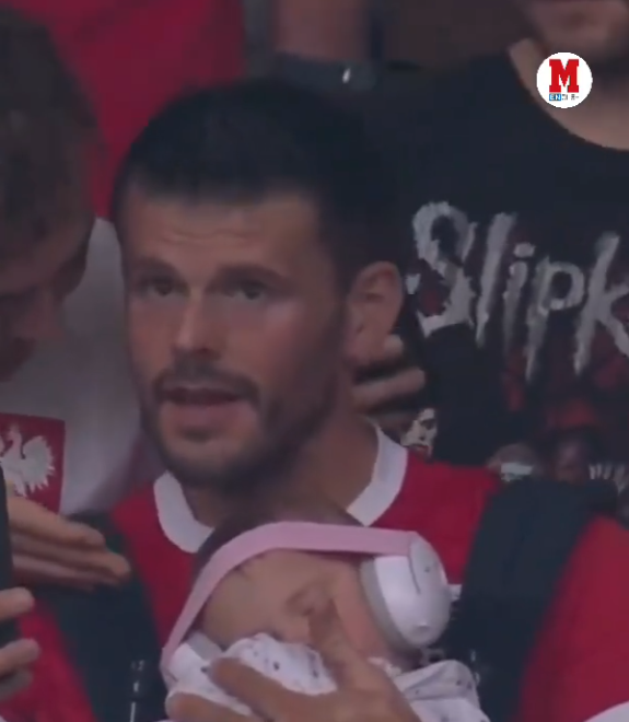 Mit dicken Kopfhörern auf den Ohren schläft das Baby seelenruhig inmitten der österreichischen Super-Fans. Laut der "OÖN" handelt es sich bei dem Mann um einen Linzer Zahnarzt, der auch im Unterhaus selbst als Amateur-Schiedsrichter tätig ist.