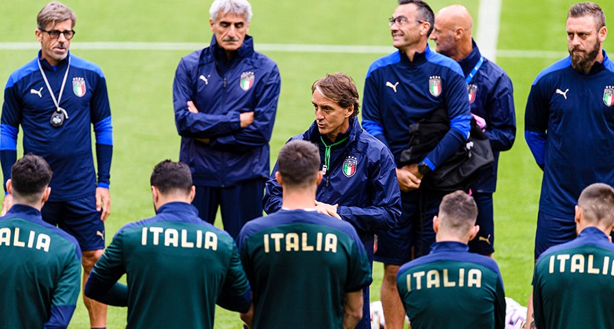 21 Donnarumma - 2 Di Lorenzo, 19 Bonucci, 3 Chiellini, 13 Emerson - 18 Barella, 8 Jorginho, 6 Verratti - 14 Chiesa, 17 Immobile, 10 Insigne