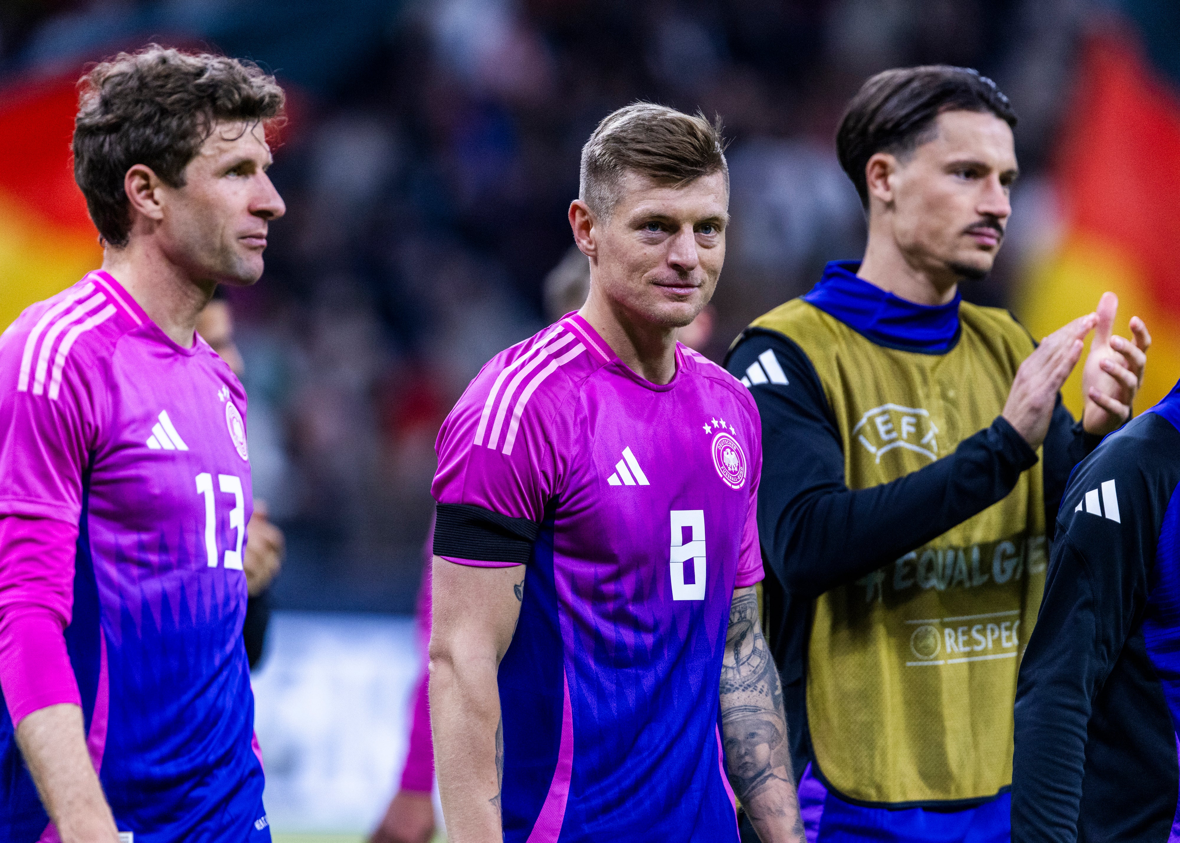 Für Real-Madrid-Held Kroos ist es nicht das erste Mal, dass er der Nationalmannschaft Lebewohl sagt. 2021, elf Jahre nach seinem Debüt, erfolgte sein erster DFB-Rücktritt - der zweite passiert diesen Sommer. Denn für die Heim-EM ließ Kroos sich ein Comeback nicht nehmen. Seine vierte Europameisterschaft (2012, 2016, 2021, 2024) wird auch das letzte Highlight seiner Karriere bedeuten - danach setzt sich der Ex-Bayern-Profi endgültig zur Ruhe. Einen WM-Triumph konnte Kroos bereits verzeichnen (2014), ein EM-Titel ließ bislang auf sich warten.