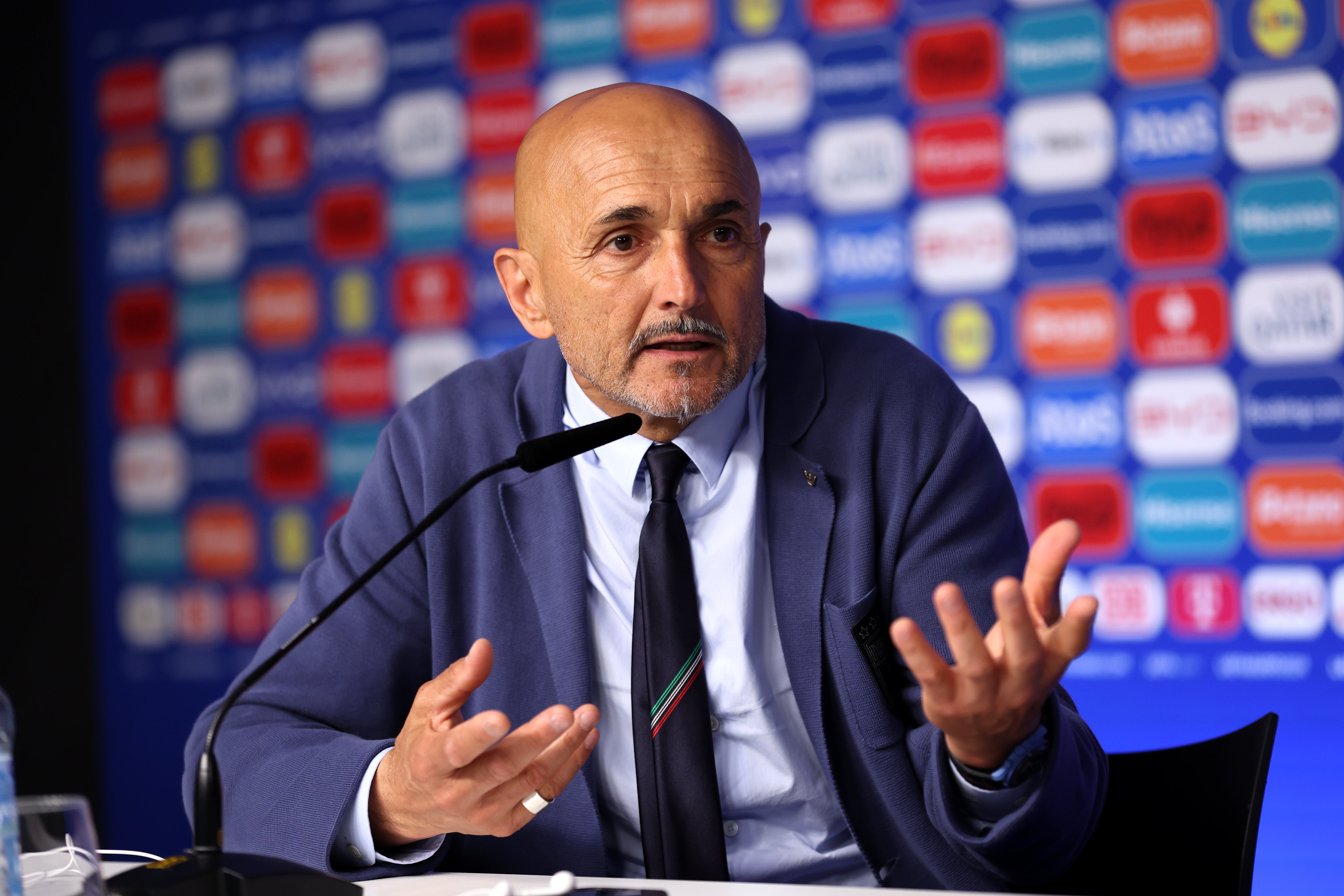 Italiens Teamchef Luciano Spalletti redet sich auf der Pressekonferenz in Rage.