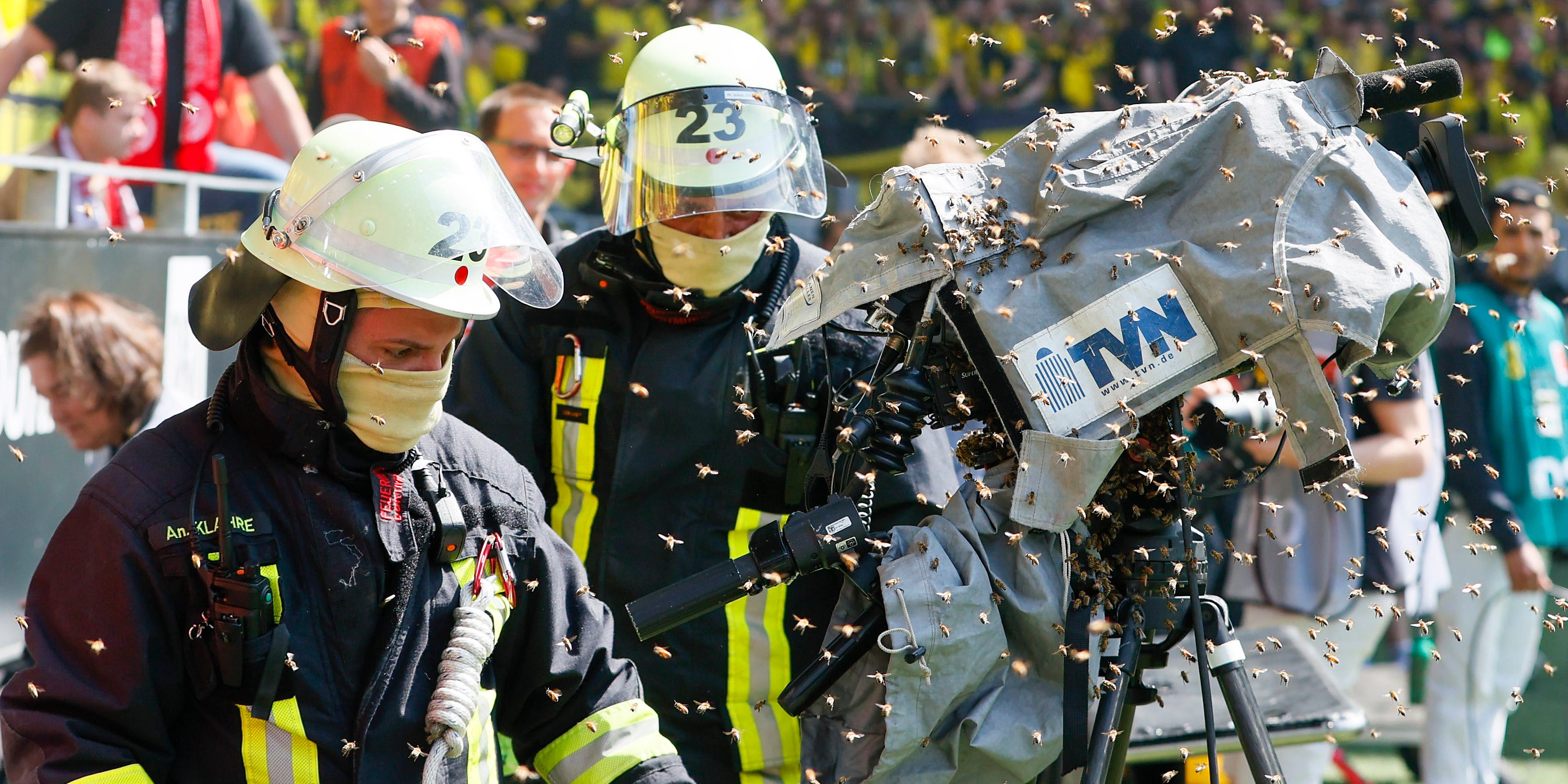 Schon vor dem Spiel musste im ausverkauften Signal Iduna Park die Feuerwehr ausrücken. Allerdings nicht, weil sich die Fans mit Pyrotechnik daneben benommen hatten, sondern weil es sich ein großer Bienen-Schwarm eingenistet hat.