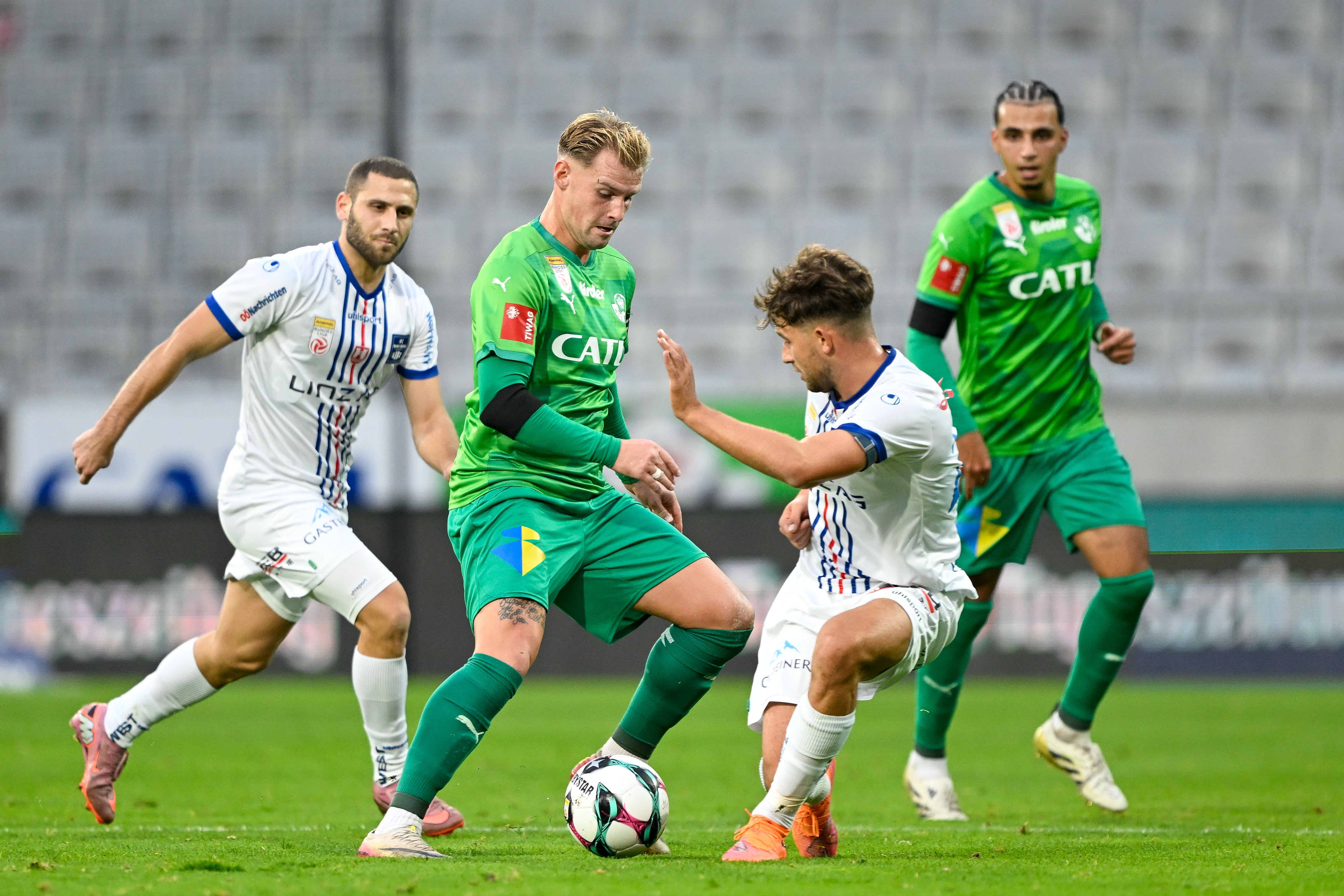 In der Anfangsphase blieben die großen Highlights aus, erst nach über einer halben Stunde nahm die Partie an Fahrt auf. WSG-Stürmer Nikolai Baden Frederiksen zog von der Strafraumgrenze ab, sein Schuss wurde von Elias Bakatukanda an die Stange abgefälscht und landete von dort in den Armen von Blau-Weiß-Schlussmann Viktor Baier (38.).