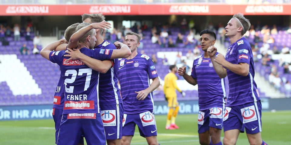 Die Violetten bezwangen am Sonntag vor rund 3.000 Zuschauern in der Generali Arena Aufsteiger SV Ried mit 2:1 (1:0). Zweifacher Torschütze war der zuletzt in den ÖFB-Teamkader berufene Christoph Monschein, der zwei Elfmeter versenkte.